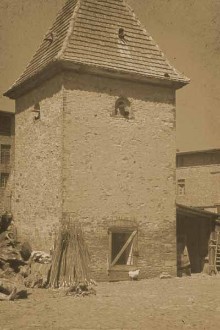 Der Hof in den 20er Jahren Der Taubenturm, der in den 70er Jahren abgerissen wurde