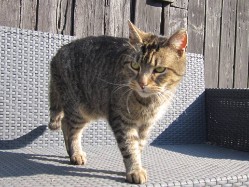 Felix ist unser zweitältester Kater und gern auch außerhalb des Hofes unterwegs. Er ist sehr "gesprächig" und "erzählt" uns gern seine Erlebnisse.