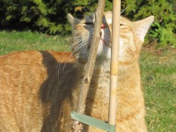 Gregor und sein Bruder Gysi sind unsere jüngsten Kater und gerade ein Jahr alt. Gregor liebt die Höhe. Er klettert gern auf Bäume und geht auf unseren Dächern spazieren.